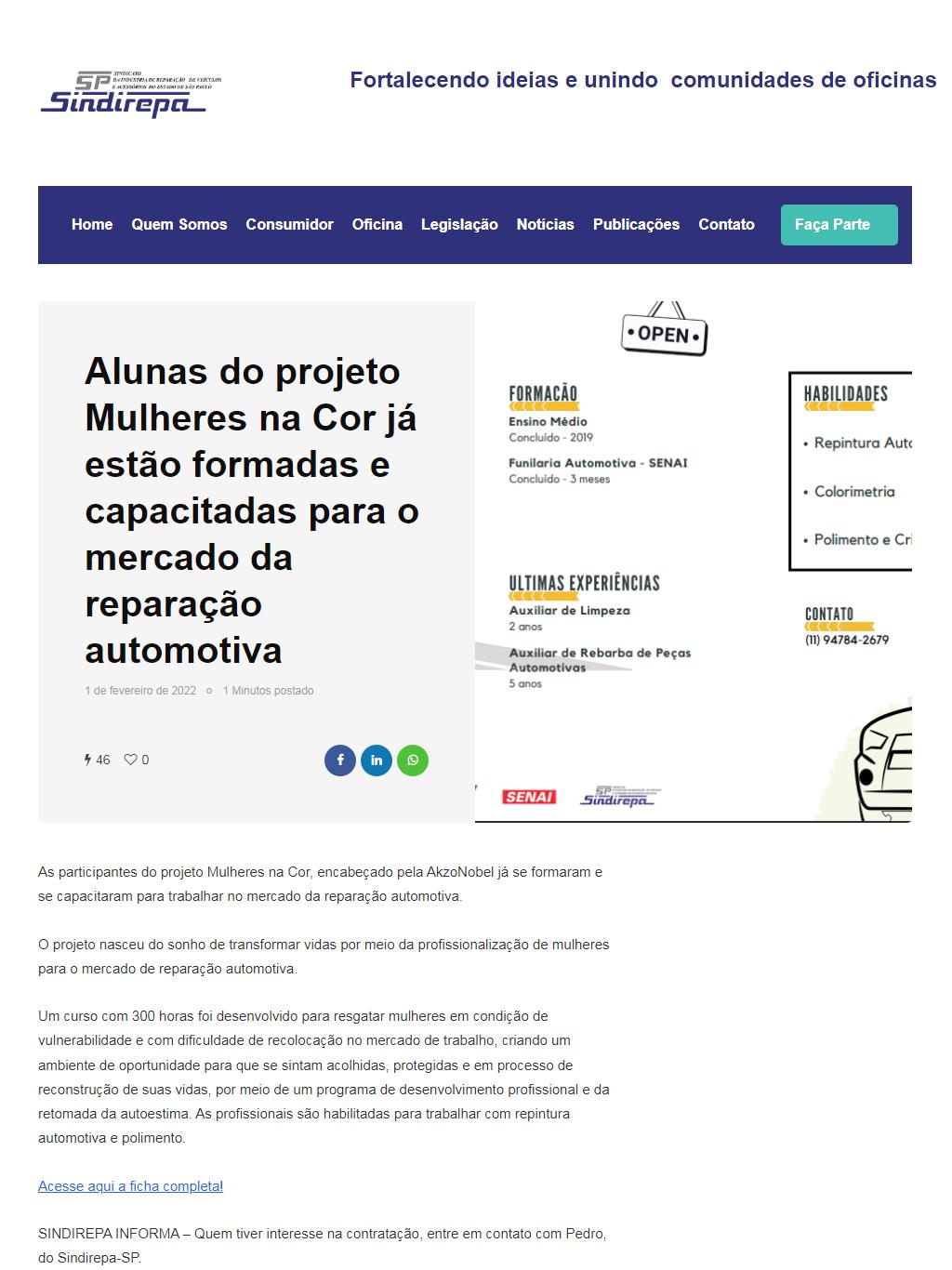 Sindirepa: Students from the Mulheres na Cor project are already formed and qualified for the vehicle refinishes market